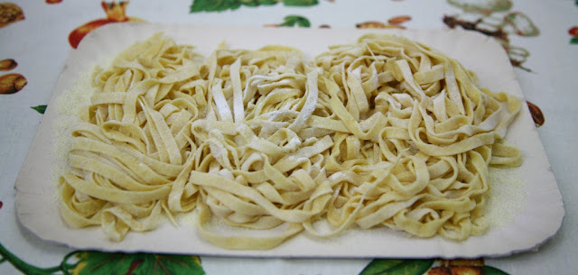 A questo punto è possibile stenderlo con il mattarello fino ad ottenere una sfoglia sottile, arrotolarla e creare le classiche tagliatelle.