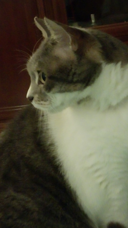 Minnie, di profilo. Stava guardando qualcosa con me alla TV, ora non ricordo cosa… ah sì! il 4° film di Hunger Games… anche lei rapita dalla ghiandaia imitatrice! :-)