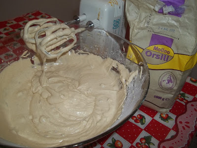 A questo punto setacciate la farina ed aggiungetela, continuate a mescolare, alla fine il composto deve risultare senza grumi.