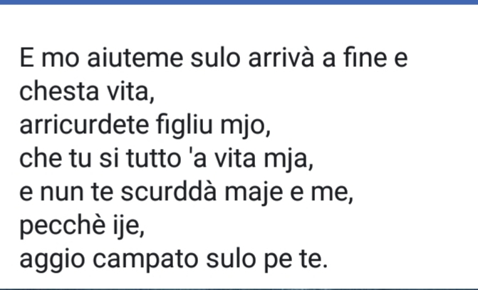 E’ una MAMMA che ricorda ..ora che è anziana tutto quello che ha fatto