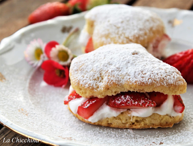 Tagliare ora i cuori a metà, farcirli con uno strato di fragole; mettere la panna nella sac a poche coprire le fragole. Ricomporre il cuore, spolverare con lo zucchero a velo e…et volà, i nostri cuoricini deliziosi sono pronti. Un abbraccio, la Chicchina.