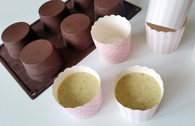 Ah e per mangiare questi deliziosi cupcakes? Facile: si prende una forchetta, si tirano fuori dallo stampo delicatamente, si appoggiano su un piatto. Noi li abbiamo serviti con della panna montata con scagliette di cioccolato. In basso la sequenza dell’”estrazione”. Buon appetito!