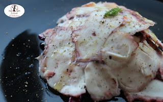 Prometto che questa è l’ultima ricetta con il polpo ma dopo il successo del carpaccio, volevo darvi un suggerimento per gustarlo.