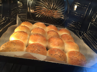 Da ogni porzione ricavare dei panetti rotondi che adagerete in una teglia formando un quadrato di 4 panini x 4 file.