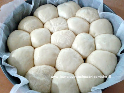 richiudi bene riformando una pallina e disponi nella teglia con la chiusura delle palline rivolta verso il basso. Fai così per tutte le palline.