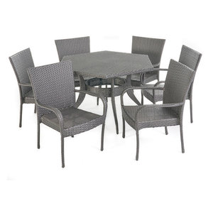 Delilah Outdoor 7 Piece Wicker Hexagon Dining Set Grey