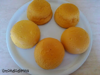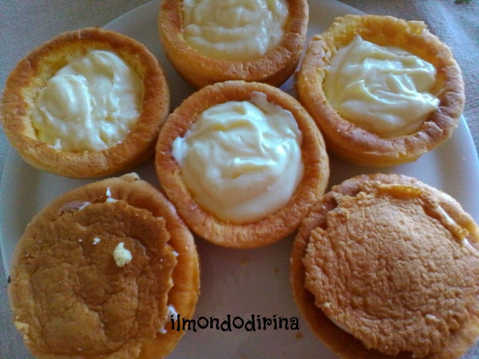 PDS: montate le uova con lo zucchero per almeno 20 minuti, dovrete ottenere un composto chiaro e spumoso. Aggiungete gratatamente la farina, la fecola e il lievito setacciati ed incorporateli con una spatola dall’alto in basso. Imburrate e infarinate gli stampini in alluminio e versatevi il composto. Infornate a 180° nel forno già caldo per 15 minuti circa. Fate raffreddare.