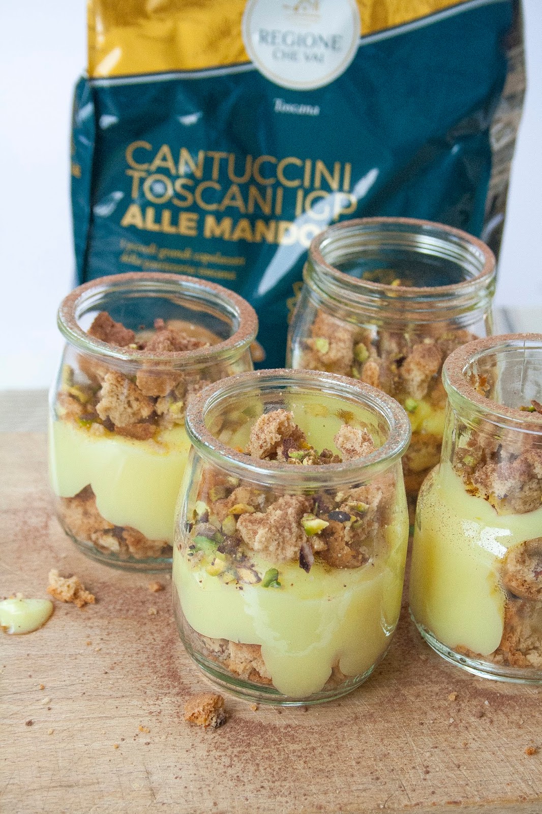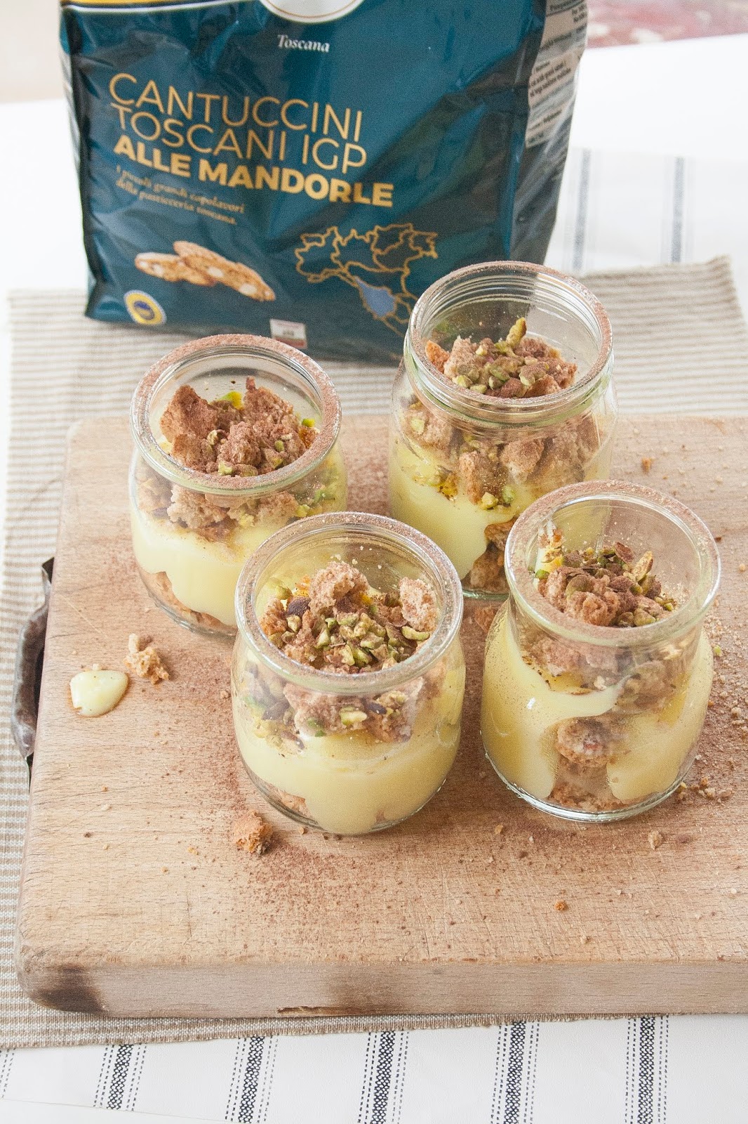 In occasione di questa sfida, ho deciso di realizzare questo dessert al cucchiaio a strati con crema pasticcera e cantuccini toscani, facilissimo da fare ma di grande effetto!