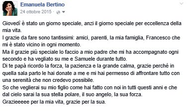 P.s. Qui sotto ti lascio le parole che io e lo zio Daniele abbiamo scritto per la tua nascita affinché non vadano perse.