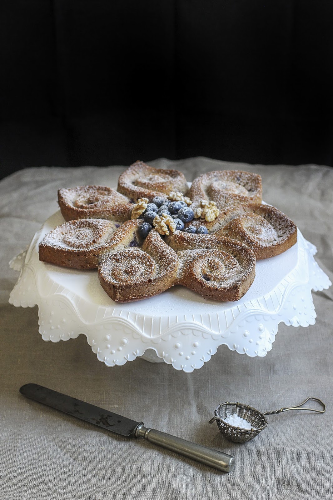 Aggiungete solo alla fine i gherigli di noci ed i mirtilli, lasciandone qualcuno da parte per la decorazione finale.