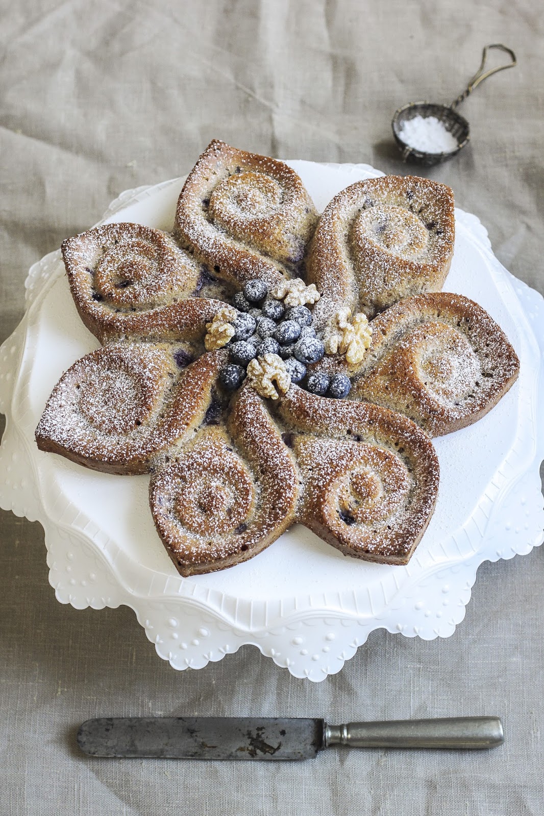 Aggiungete solo alla fine i gherigli di noci ed i mirtilli, lasciandone qualcuno da parte per la decorazione finale.