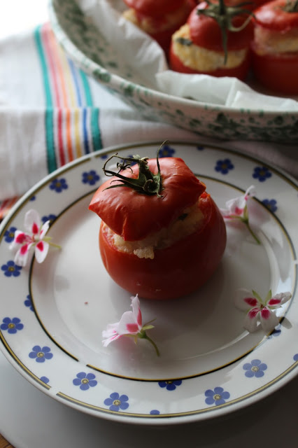{Per iniziare consiglierei i Pomodori ripieni con tanto buon riso e una spruzzata di limone che ci dice: “hey, l’estate è ancora qui”. Perfetti da preparare in anticipo, buonissimi da mangiare freddi. In abbinamento, per festeggiare, un bicchiere di vino bianco, morbido nel gusto e profumato. }