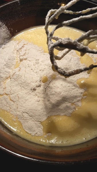 Aggiungere poca per volta la farina setacciata precedentemente al lievito e al pizzico di sale…