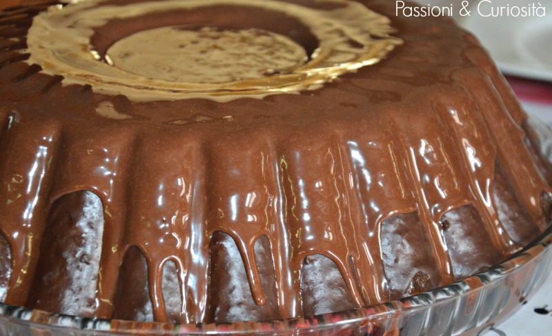 Prima di servire il dolce, scaldare a bagnomaria la glassa tenuta da parte. Quando si è sciolta versarla sul dolce e riempire il foro centrale.