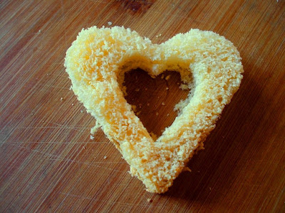 - Riprendere gli altri 8 cuori e bucarne il centro con un coppapasta a cuore più piccolo e tenerli da parte.