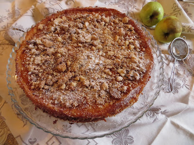 La ricetta di questa torta è di Marina Braito, in  rete se ne trovano tantissime versioni, è una torta di crumble frammezzata da mele sormontata da uno strato di panna e yogurt, una vera bontà.
