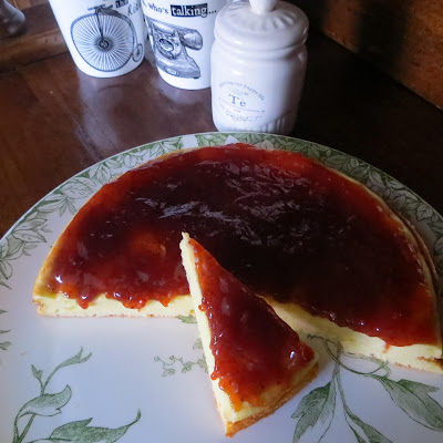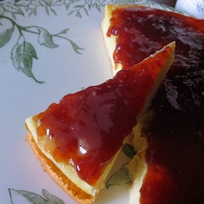 Dopo averla sfornata e trasferita sul piatto, lasciatela raffreddare quindi ricoprite tutta la sua superficie con confettura di fragole.