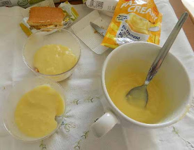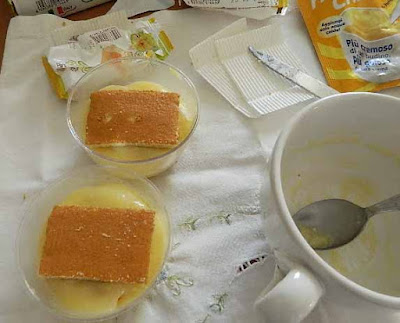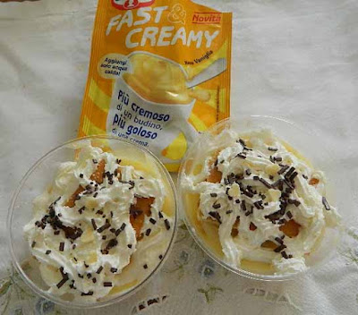 Prendere due coppette e sul fondo mettere una Merendina Dolcetto aperta in due con la parte della crema sopra. In una tazza mettere il contenuto della busta Fast Creamy