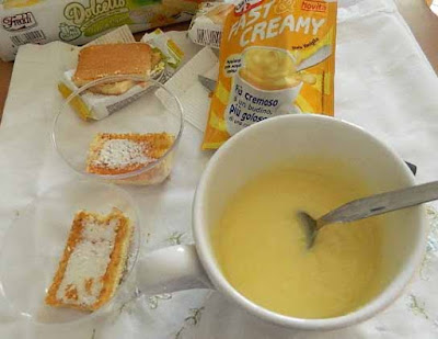 Il Dolce in Tazza Veloce è nato per caso una sera che volevo qualcosa di dolce da gustare guardando un film. Ho aperto il mobile della cucina e davanti a me le golose merendine della Dolciaria Freddi e una busta di Fast Creamy della Cameo, ed ecco l’idea di un dolcetto veloce e sicuramente deliziozo, visto gli ingredienti. Detto fatto……..