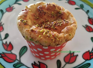 Ingredienti : 3 uova intere, 100 g di polpa di annona, 200 g di ricotta vaccina, 150 g di zucchero, cannella, 100 g di farina 00, 1 bustina di lievito per dolci, pistacchi per decorare. Montare i tuorli con lo zucchero e a parte gli albumi a neve. Aggiungere gli altri ingredienti e da ultimi gli albumi cercando di mescolare delicatamente per non farli smontare. Versare l’impasto nei pirottini o negli stampini, cospargere la superficie di granella di pistacchi o pistacchi interi e infornare a 180° per 20 minuti.