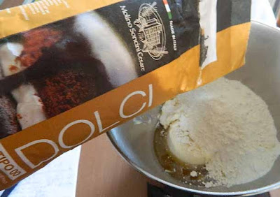 ed infine il lievito, impastare bene fino ad ottenere un panetto morbido che lasceremo riposare in frigo per 30 minuti.