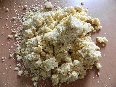 Mettere il composto sulla spianatoia e impastare con le mani, in pochi minuti diventerà compatto. A questo punto mettere la Pasta Frolla in frigo per mezz’ora.