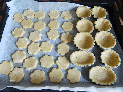 foderare con la pasta frolla le formine preparate facendola aderire bene ai bordi e ritagliare le forme dei biscotti scelte.