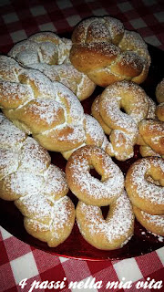Trascorso il tempo necessario, dividiamo l’impasto in 8-10 pezzi (a seconda della grandezza desiderata) e diamo la forma che preferiamo alle nostre brioche (io ho fatto delle treccine, delle coroncine e dei tarallini).