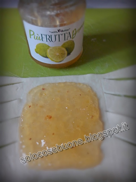 Ripieghiamo i lembi verso l’interno e deponiamo nel centro un cucchiaino di confettura.