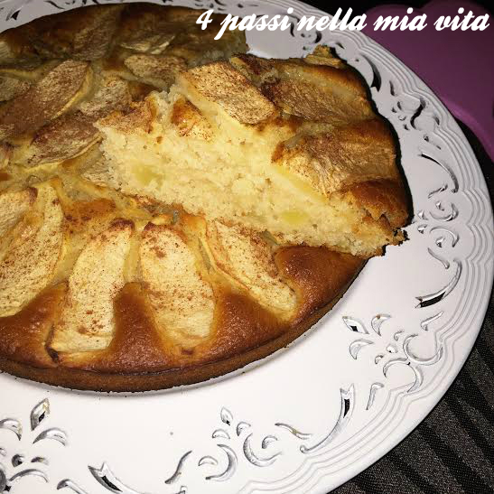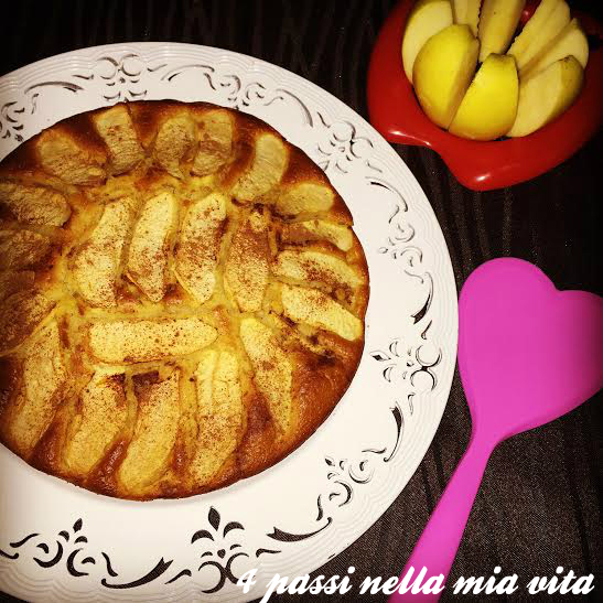 Versiamo l’impasto in una tortiera imburrata ed infarinata e disponiamo sulla superficie delle fettine di mele.
