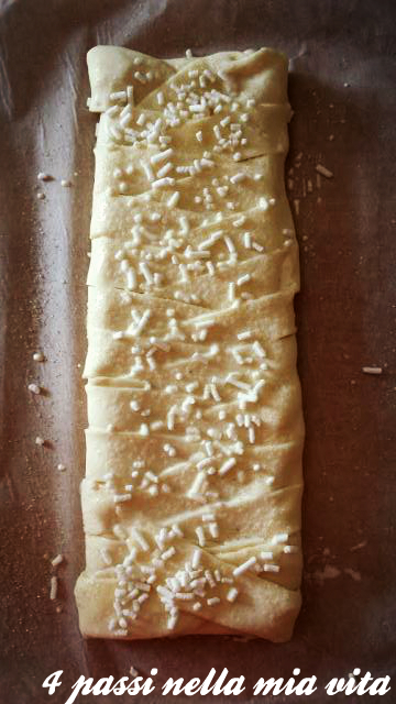 Spennellate la treccia con il latte, cospargetela con zucchero di canna e granella di zucchero