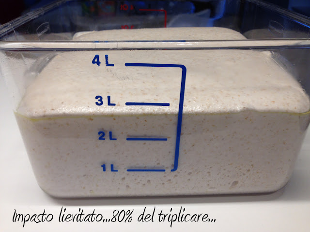 Come vedete il livello di idratazione sempre lo stesso. E’ importante determinare il peso di farina ed acqua e detrarlo dagli ingredienti, siano essi i liquidi o le polveri. Questo è importante perché a volta, soprattutto quando si lavora ad alte idratazioni basta poco per superare il livello di assorbimento delle farine e quindi avere conseguenze negative nell’incordatura dell’impasto.