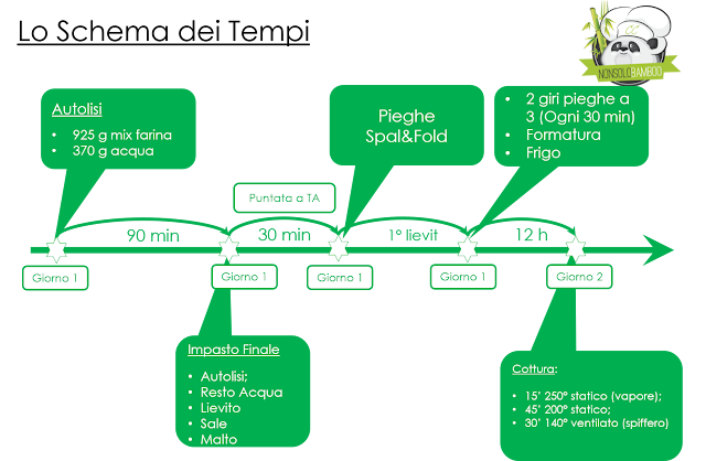 Ecco lo schema del procedimento del pane: