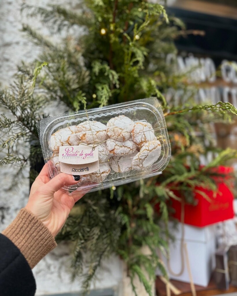 Dimenticatevi le scatole che trovate al supermercato…, i veri ricciarelli di Siena son altri! E Pietro ha scelto quelli della pasticceria senese Peccati di Gola, e se siete fortunati trovate anche le Copate e i cantuccini.