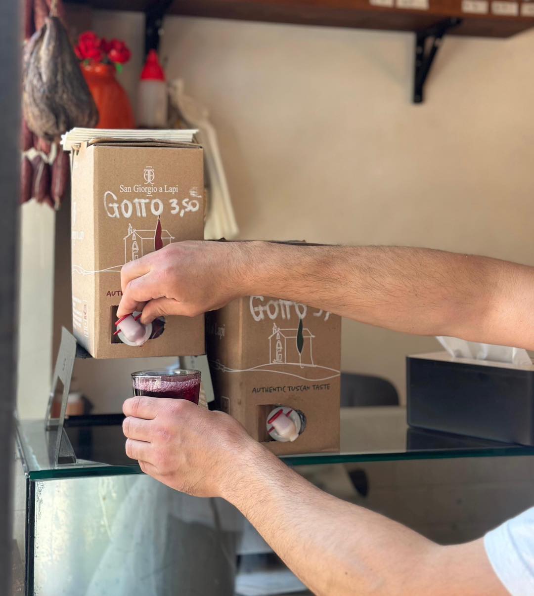 Per accompagnare le Polpette di Pane o le Polpette di Lampredotto, i Crostini neri, gli Involtini di Verza con Carne Toscana e i Panini espressi, non si può di certo murare a secco, anzi ci vuole sempre un “gottino di vino“, come si dice a Siena, e in questo caso con il vino della casa, c’è un forte legame di amicizia con l’azienda di San Giorgio a Lapi a pochi km da Siena.