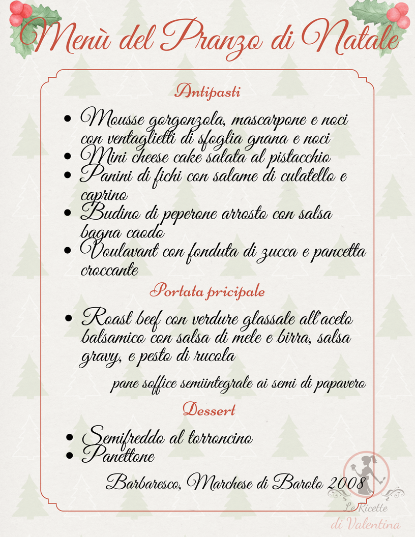 Come ogni anno è arrivato il momento di annunciare i miei menù, ovvero cosa cucinerò quest’anno per la mia famiglia.