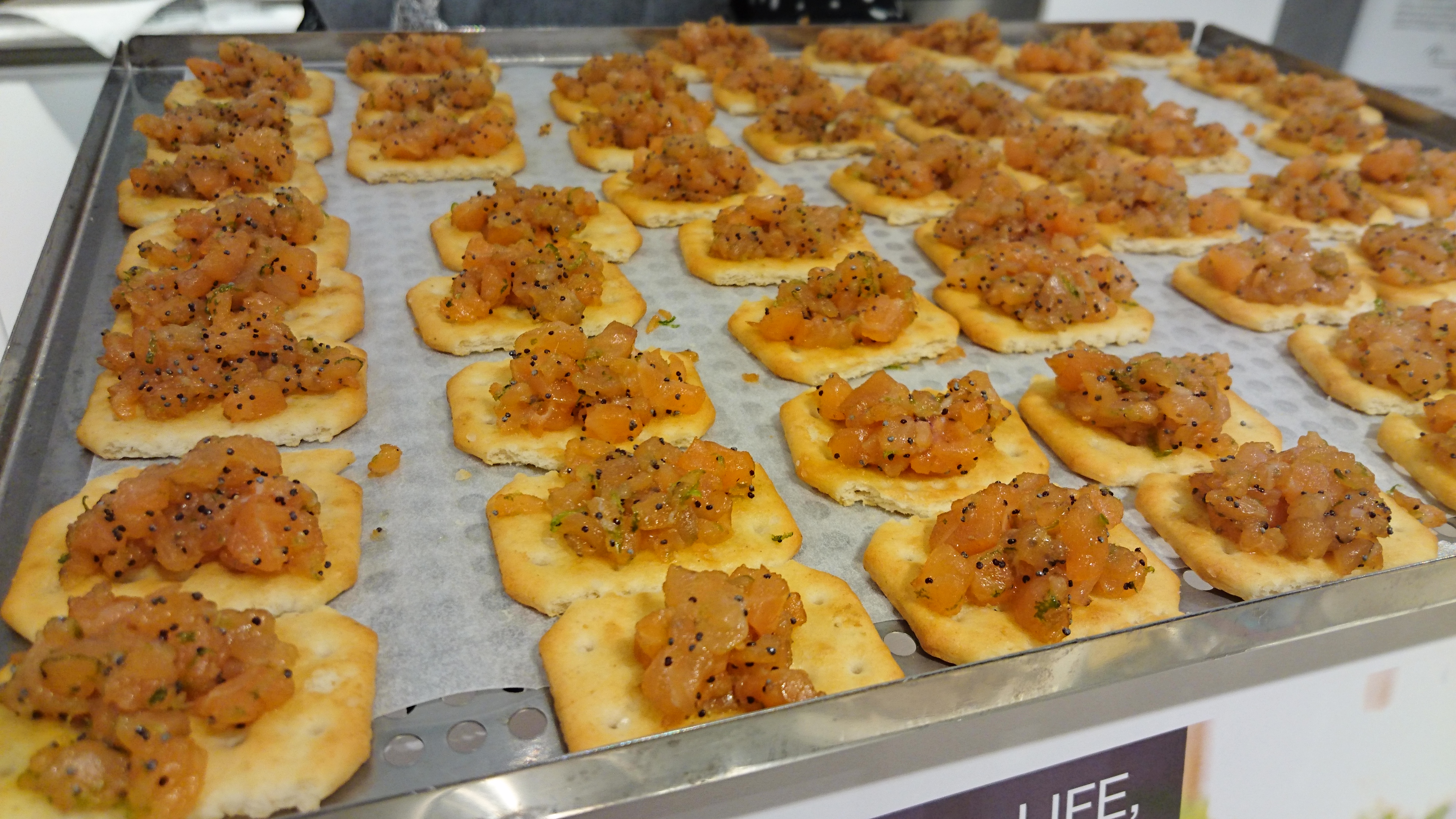 Canapè ditartare di salmone al lime e semini, da preparare quando si hanno ospiti o come entrée per una cena speciale. Abbattendo il pesce fresco direttamente a casa si evitano possibili antipatiche intossicazioni e ci si godono sushi e tartare quando si vuole. Ovviamente vale sia per il pesce che per la carne.
