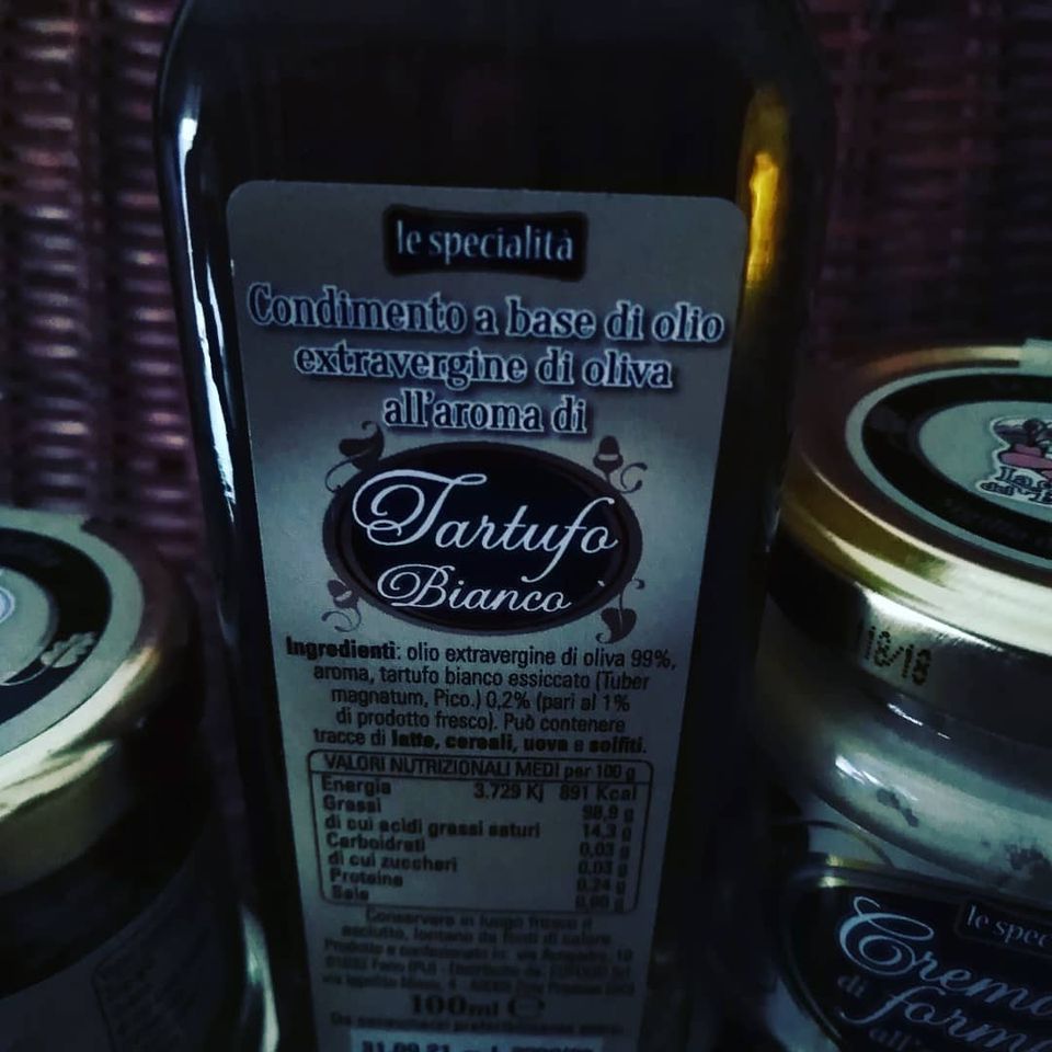 Olio di oliva al tartufo è una variante al tartufo bianco di alta qualità, all’interno gusto e sapore. Provatelo sui vostri primi piatti.