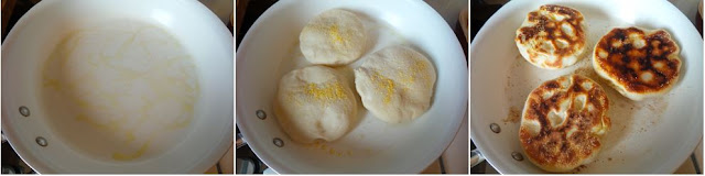 In una padella antiaderente mettiamo un giro d’olio e facciamolo scaldare quindi iniziamo ad adagiare i nostri english muffin che dovranno cuocere per 4′ circa. Togliamoli, quindi, dalla padella, mettiamo un altro giro d’olio e facciamoli cuocere dall’altro lato per altri 4′ continuando così fin quando non avremo terminato tutti i nostri muffin.