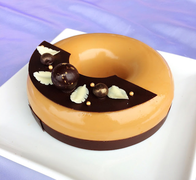 L’indomani estraete il dolce congelato e glassatelo, quindi terminate con dei decori in cioccolato temperato.