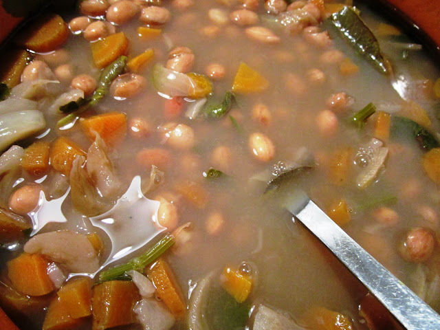 - sciacquare bene e cuocere (io nel coccio) con abbondante acqua fredda, carote a pezzetti , prezzemolo, cipolla , rosmarino , salvia e sedano