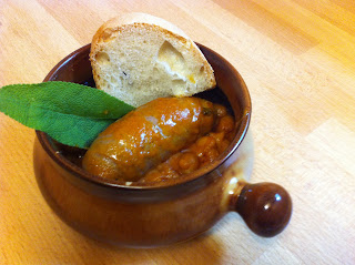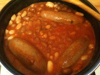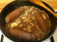 Ho aggiunto nuovamente le salsicce nella padella con i fagioli.