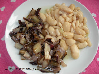 Cuocere i fagioli per 2 ore in pentola di ceramica coperti d’acqua, dopo averli tenuti in ammollo una notte. Eliminare parte dell’acqua di cottura, condirli e tenerli da parte. Tagliare il gambo dei radicchi ed affettarli sottilmente. Scottarli pochi minuti in padella con un filo d’olio, aggiungere un pizzico di sale e portare in tavola con i fagioli.