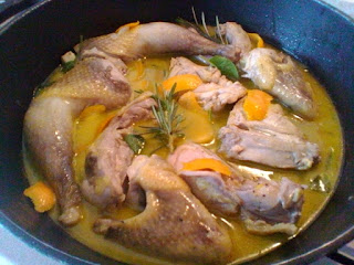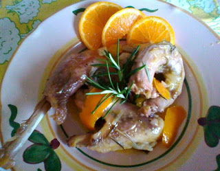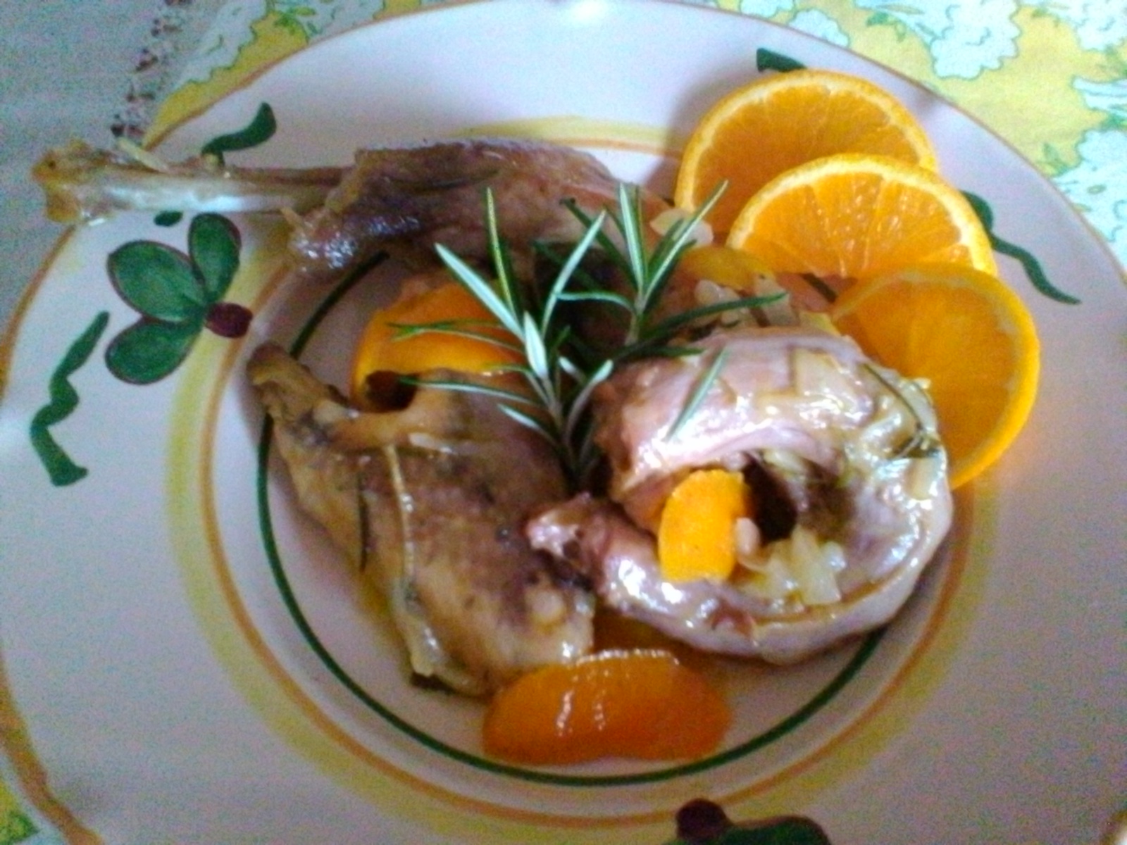 Sbucciate l’arancia e mettete le bucce nella padella. Unite pure il succo, coprite il tegame e continuate la cottura a fuoco basso fintanto che la carne non sarà cotta, se necessario aggiungete un pò d’acqua calda.