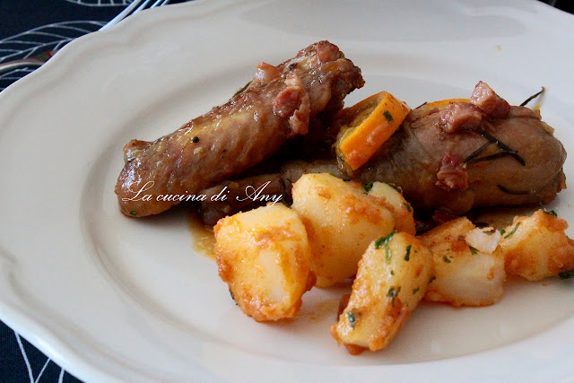 De data asta, pentru pranzul de duminica trecuta, am vrut sa incerc ceva nou si asa mi-am amintit de reteta asta vazuta acum cativa ani pe blogul Giulianei. Foarte buna a iesit, carnea aromata si parfumata, o s-o refac cu siguranta.