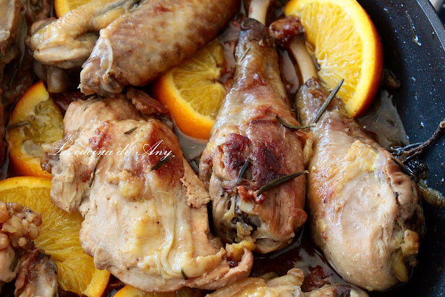 Quasi a fine cottura (5 minuti prima di spegnere il fuoco) aggiungere il succo d’arancia e l’altra arancia tagliata a fette.