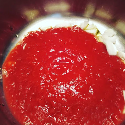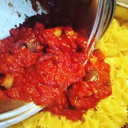Nel frattempo lavate e tagliate a tocchetti la melanzana, io non la faccio friggere, ma l’aggiungo direttamente al #sugo, mentre cuoce, salate e finite la cottura.