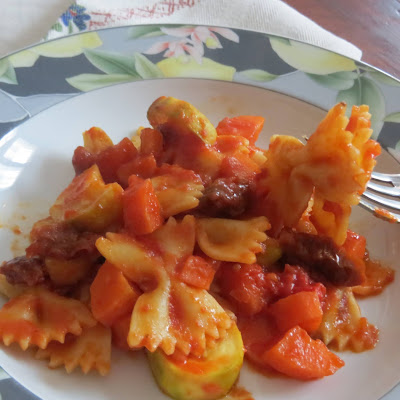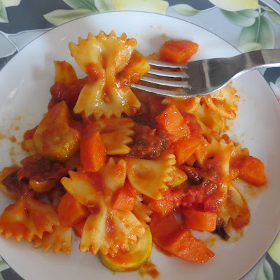 Cuocete le farfalle e scolatele leggermente al dente, quindi trasferitele nella padella con il condimento, amalgamate bene, aggiungete qualche foglia di basilico fresco e se vi può piacere una manciata di pecorino grattugiato.