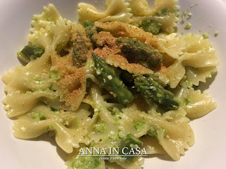 Oggi vi lascio questa idea veloce veloce e ricca di gusto, le farfalle, tra il mio formato di pasta preferito, con una delicata crema di asparagi e pangrattato.