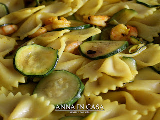 Scolare la pasta e versarla nella padella con le zucchine e i gamberetti, irrorare con olio e lasciare sulla fiamma media per circa 1 minuto.